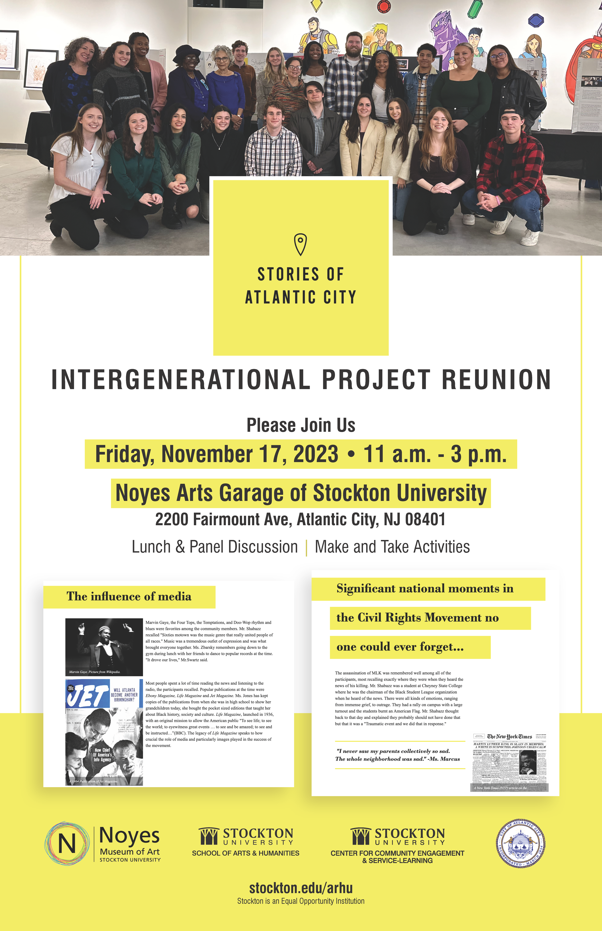 Join the Stories of Atlantic City for their first-ever Intergenerational Project reunion and celebration on Friday, November 17 from 11:00 a.m. to 3:00 p.m. There will be a panel discussion and lunch provided for attendees.