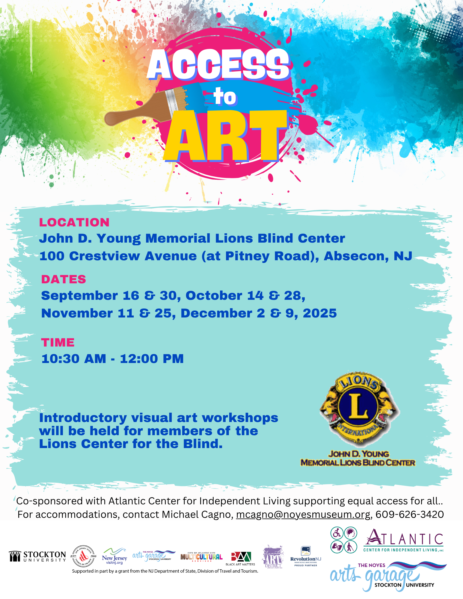 Members of the John D. Young Memorial Lions Blind Center are welcome to attend these introductory artist-led workshops where participants are guided to create a finished piece each class.