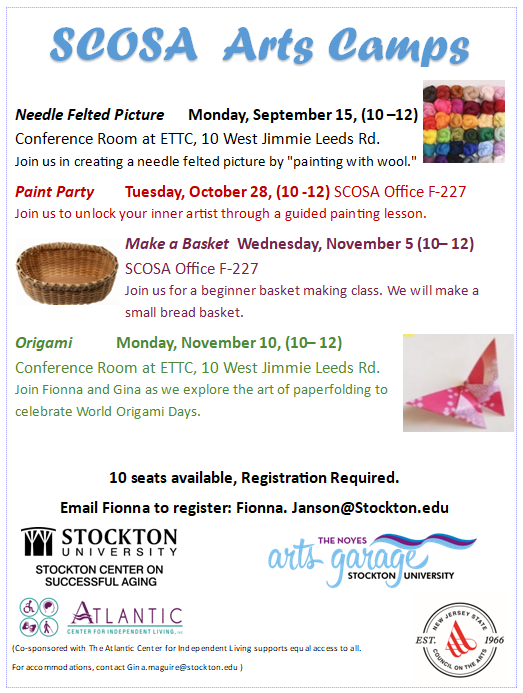 Older adults are encouraged to attend these free art workshops sponsored by the Noyes Museum of Art and the Stockton Center on Successful Aging.