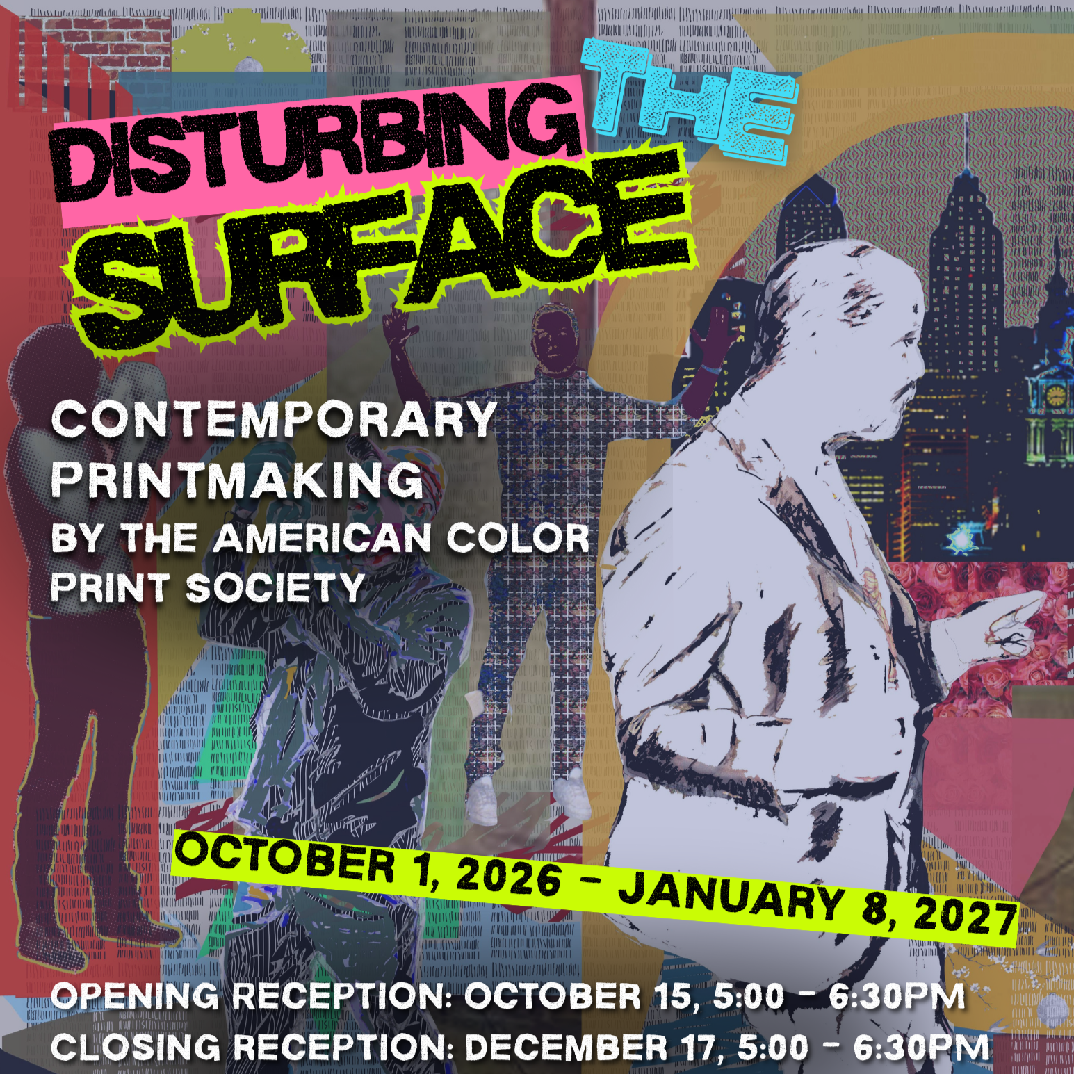 Printmaking has always been about touching the surface—scratching, carving, inking, or pressing to bring an image to life. Disturbing the Surface celebrates this spirit of transformation, showcasing work by members of the American Color Print Society. To create a print, each artist alters a surface—a metal plate, woodblock, lithographic stone, or digital file. This modification, once transferred to paper, results in a final work as varied in mood and meaning as the techniques and artists themselves. The exhibition spans traditional and contemporary approaches, from etching and lithography to cyanotype, risograph, digital printmaking, relief, and screenprint. Visitors will find everything from bold, graphic compositions to delicate, layered impressions—proof that printmaking remains a vital and endlessly adaptable art form.